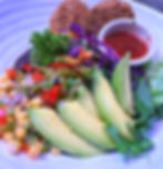 sautéed season veggies + hummus+olives+field greens+rice/quinoa blend+roasted chickpeas + tahini sauce (GF,V)